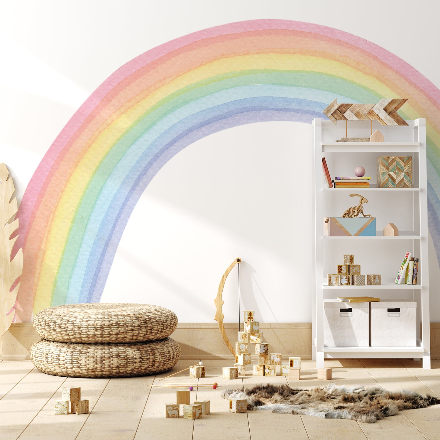 Peel and Stick Large Fabric Rainbow Sticker Watercolor Rainbow Wall Mural