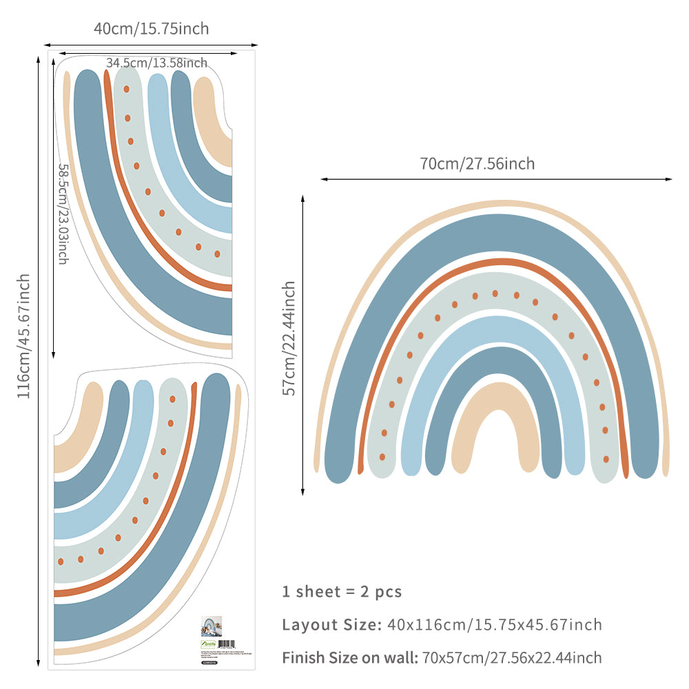 Peel and Stick Large Boho PVC Blue Rainbow Wall Stickers