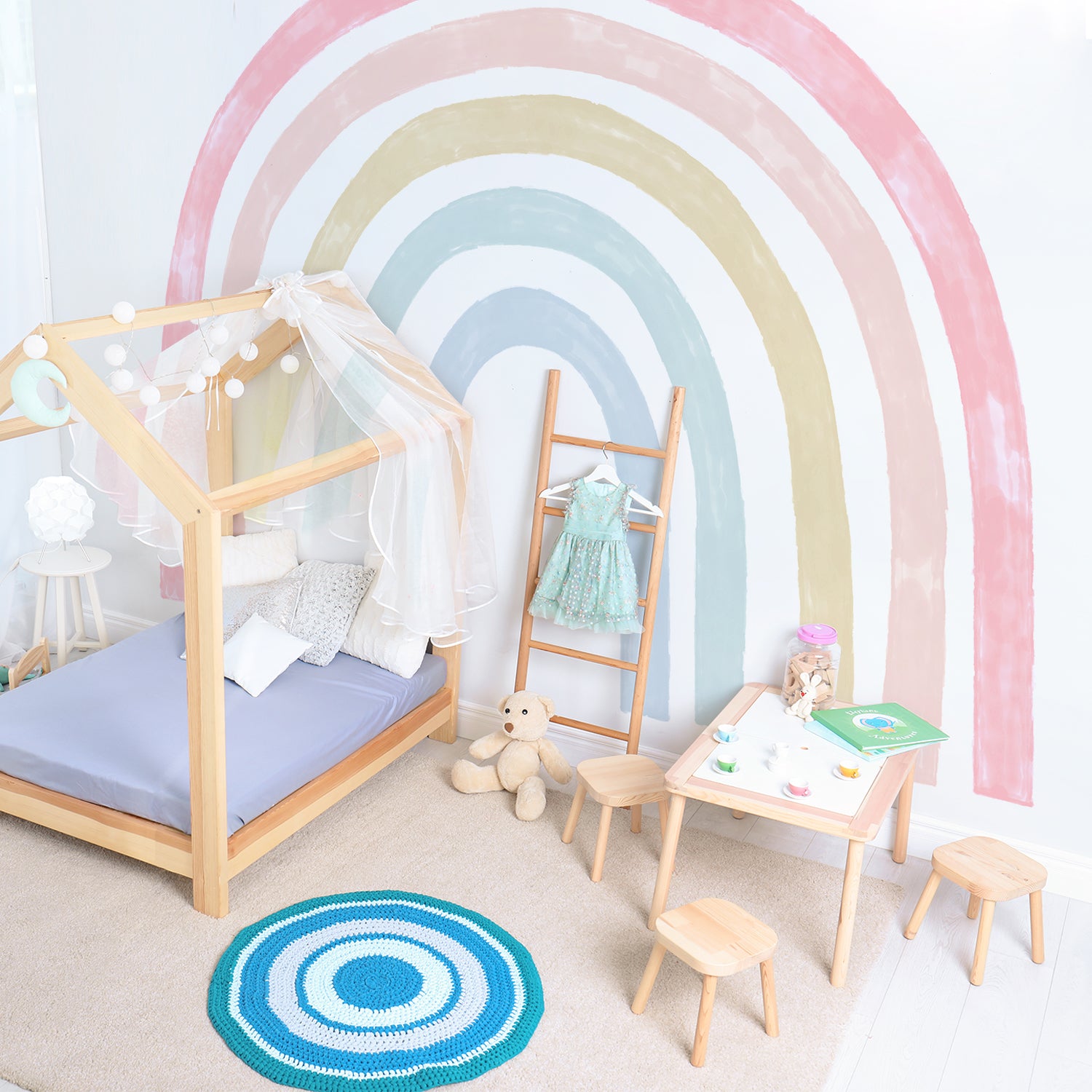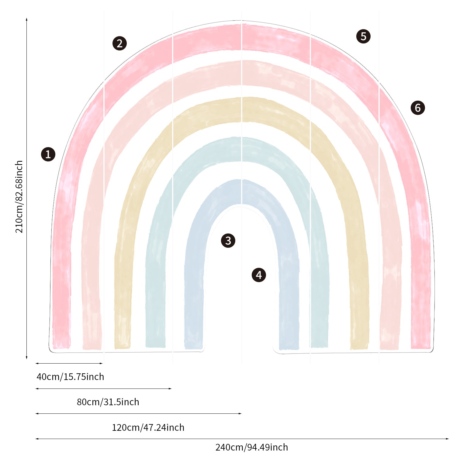 Peel and Stick Large Fabric Rainbow Sticker Boho Watercolor Rainbow Wall Mural