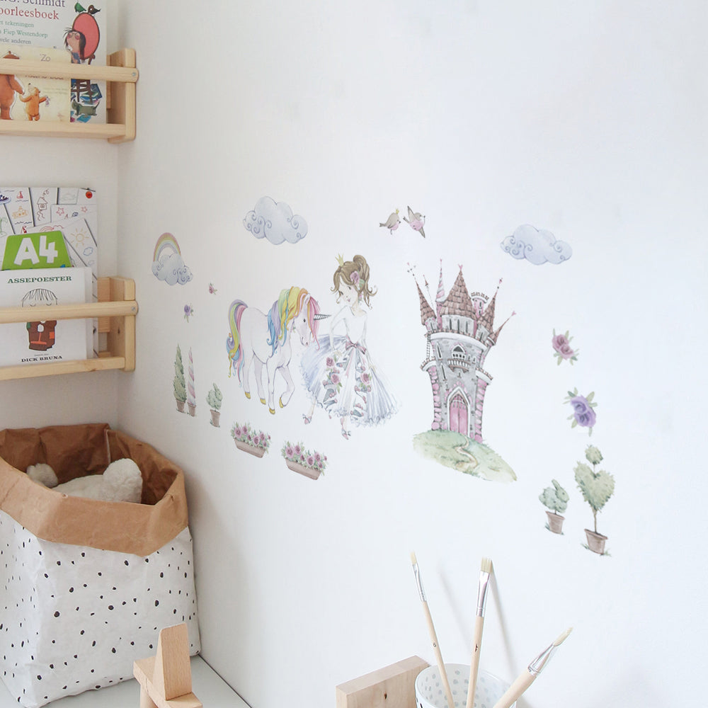 Peel and Stick Large PVC Girl with Unicorn Sticker