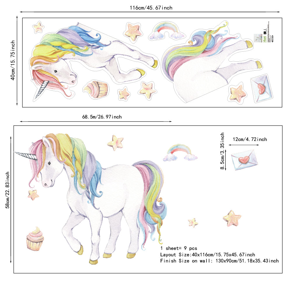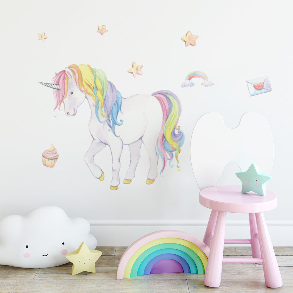 Peel and Stick Large PVC Rainbow Unicorn Sticker