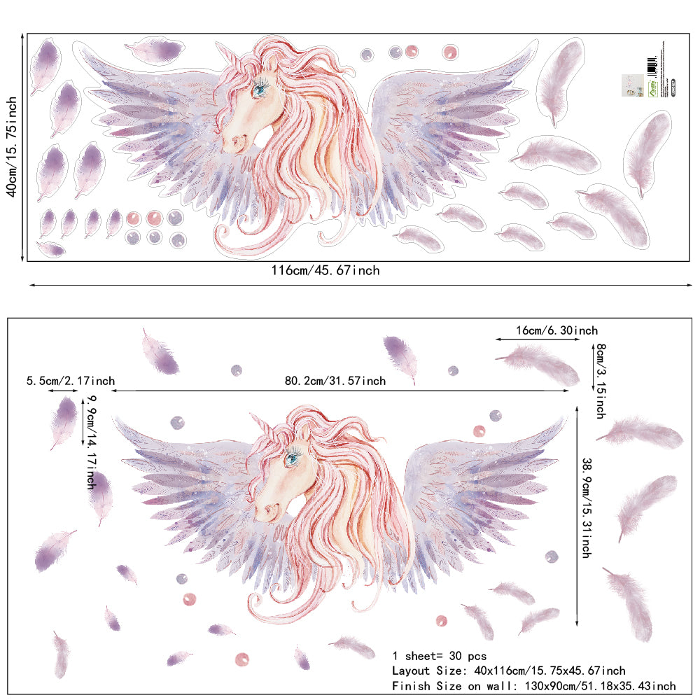 Peel and Stick Large PVC Wing of Unicorn Sticker