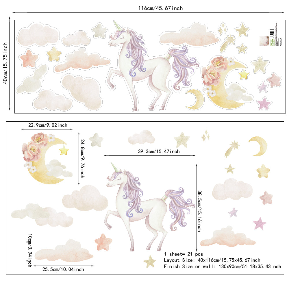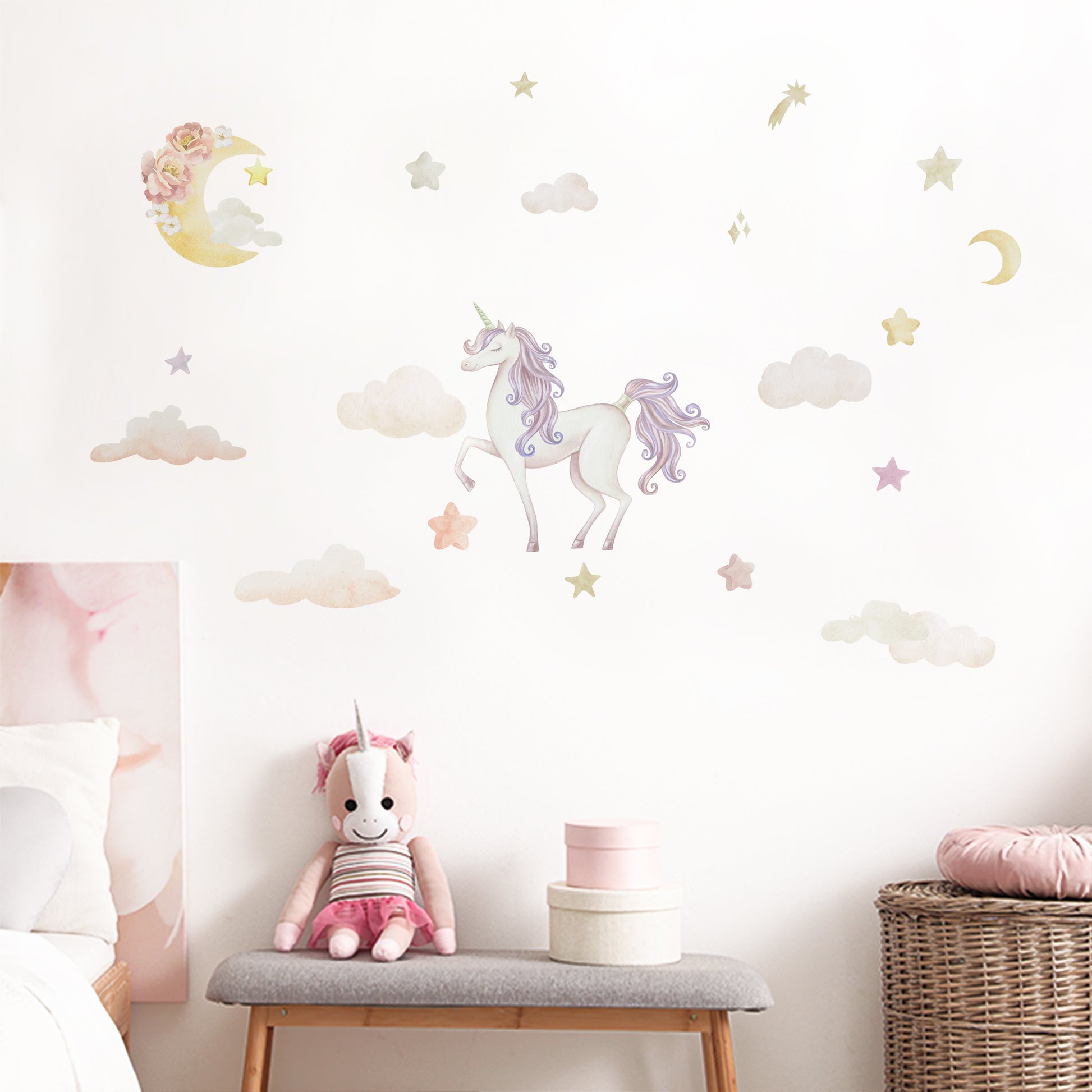 Peel and Stick Large PVC Unicorn Moon and Back Sticker