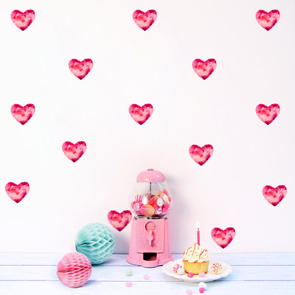 Peel and Stick PVC Small Geometric Pink Watercolor Heart Shape Wall Decals