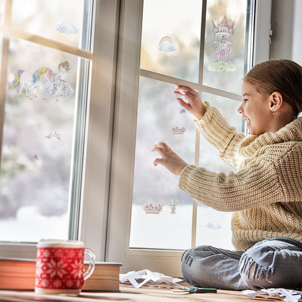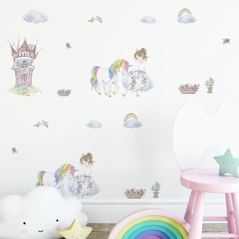 Peel and Stick PVC Small Girl with Unicorn Wall Stickers