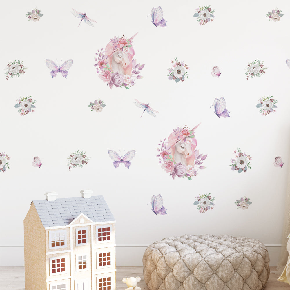 Peel and Stick PVC Small Secret Garden of Unicorne Wall Stickers
