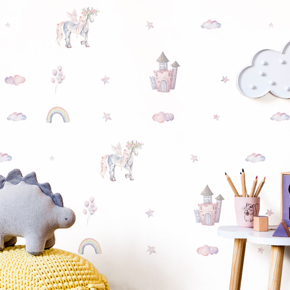 Peel and Stick PVC Small Unicorn Castle Wall Stickers