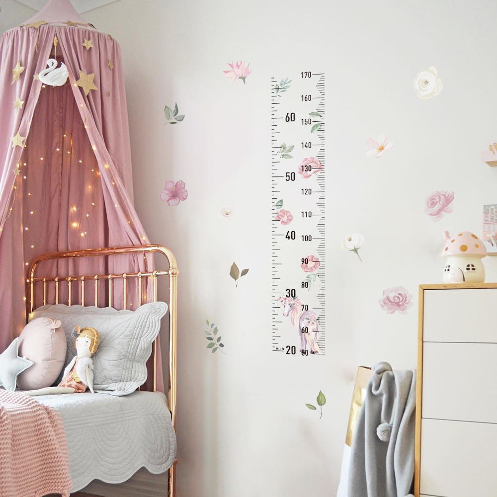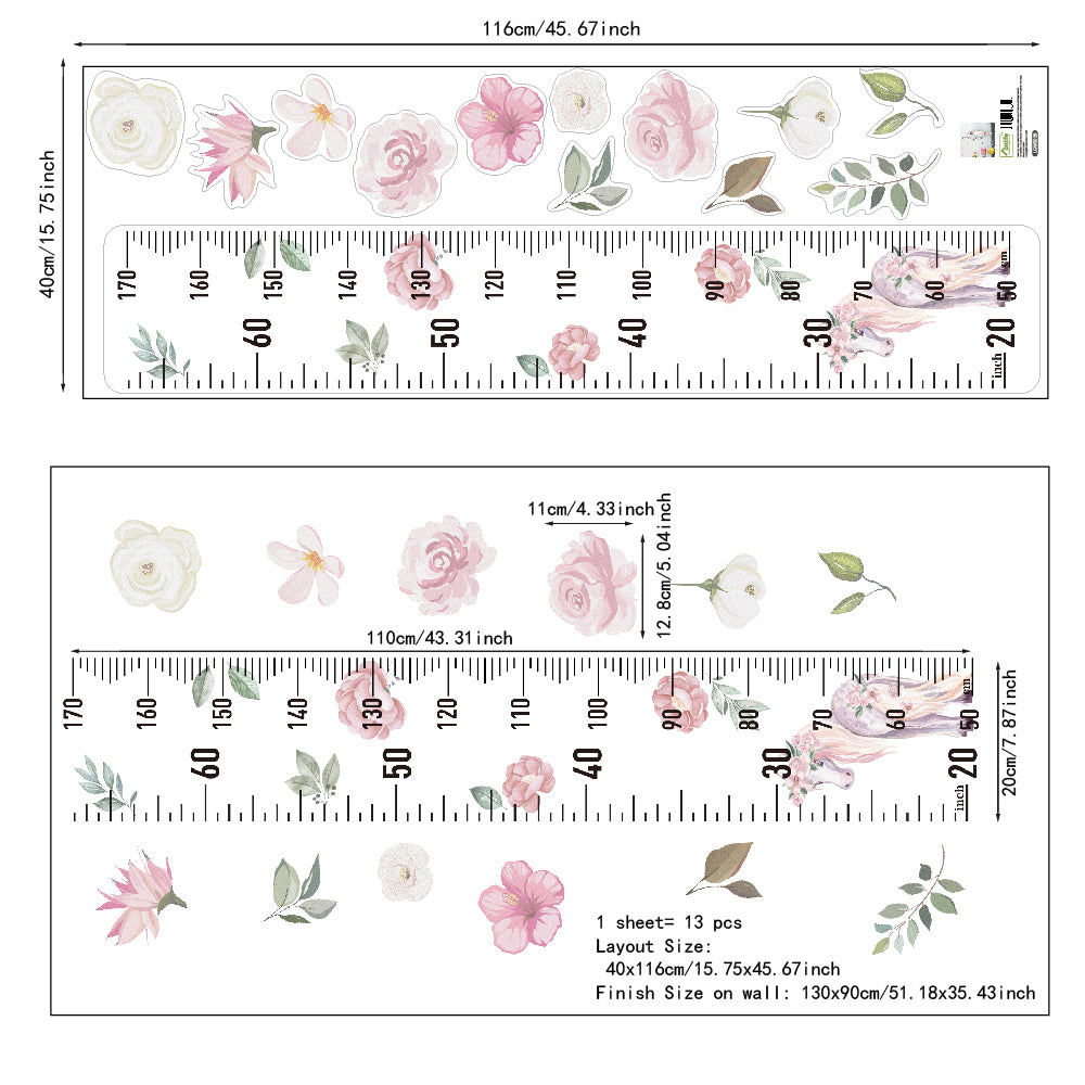 Peel and Stick PVC Unicorn Growth Chart Flowers Wall Stickers