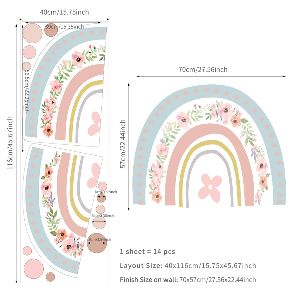 Peel and Stick Large Boho PVC Flower Rainbow Wall Stickers